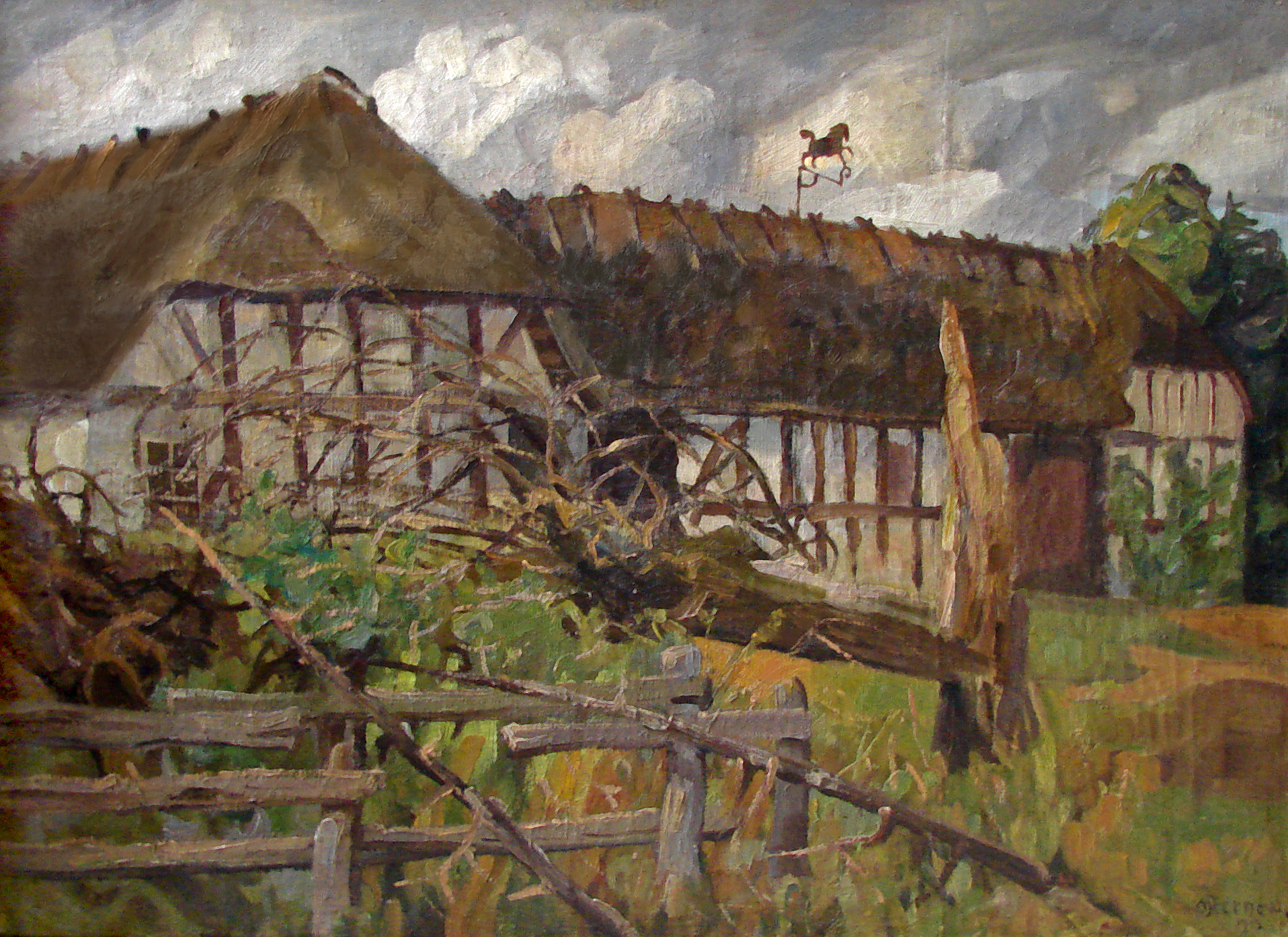 Oliemaleri af Hvenegaarden malet i 1915 af Ove R. Sternow Fotograferet med venlig tilladelse af maleriets